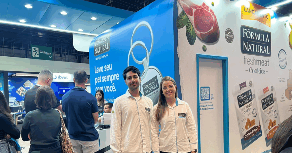O estande da marca, localizado logo na entrada da feira, se destaca pelo movimento constante e pelas ativações para o público. Além da distribuição de amostras das linhas Vet Care e Fresh Meat, os visitantes conferem a vitrine com toda a linha Fórmula Natural e participam de ações interativas, como a personalização de chaveiros com fotos dos pets. “A ideia das amostras é realmente apresentar nosso produto ao mercado. Queremos que quem ainda não conhece a Fórmula Natural possa experimentar e comprovar a qualidade”, completa Caroline.