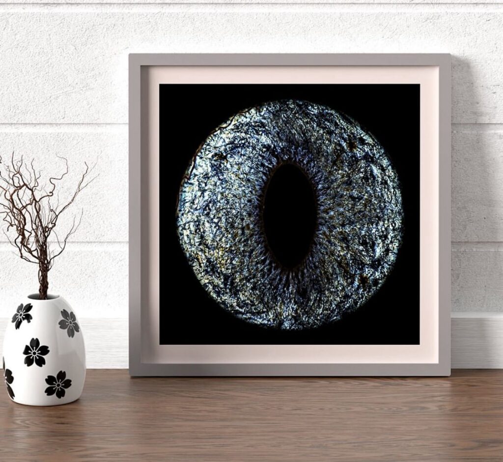 O que era para ser uma sessão comum de fotografia de íris humana virou o ponto de partida de um novo serviço. A ideia de registrar a íris de pets surgiu quando uma família, satisfeita com seus próprios quadros, perguntou se seria possível fazer o mesmo com o gatinho deles.