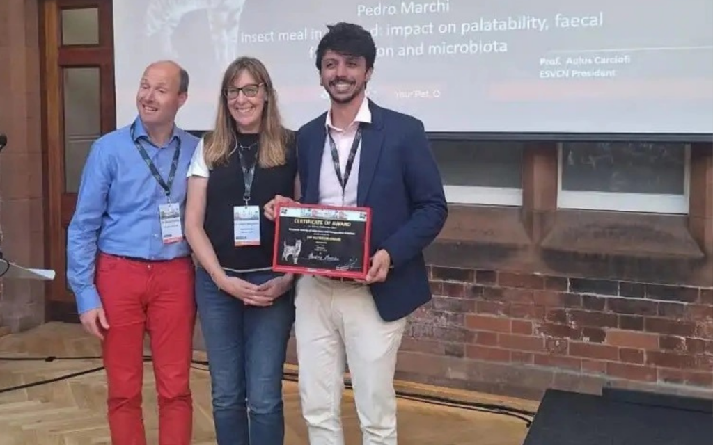 O estudo premiado Insect meal in cat food: impact on palatability, digestibility, fecal fermentation, and microbiota, contribui para a consolidação da farinha de larva de mosca soldado-negro como ingrediente adequado para o consumo de gatos adultos. Por meio dos resultados, foi possível observar bom nível de digestão da farinha, sem impactos negativos na saúde intestinal dos gatos. Ainda, os animais apresentaram ótimo índice de aceitação às dietas, e nenhum episódio de diarreia ou vômito foi registrado.